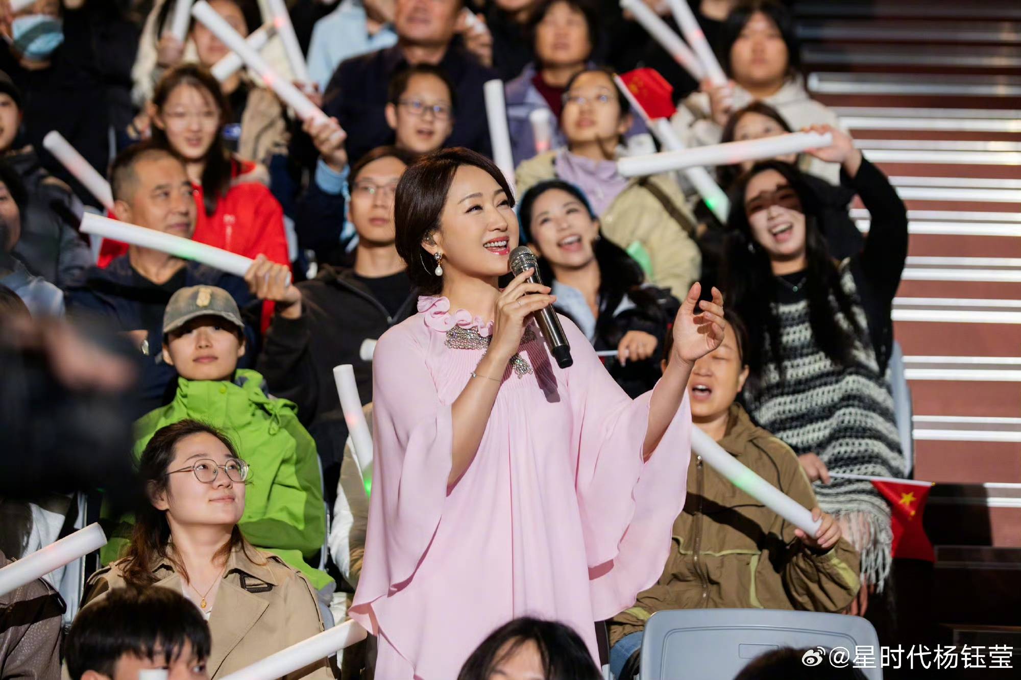 其实回看历史,杨钰莹一直有“收视女王”的名号,她曾六次参加湖南卫视的跨年晚会演出,五次创造收视最高峰,剩下那一次也是第二名,今年秋晚夺魁已经是杨钰莹第六次发力了。说是“发力”,实际上杨钰莹在舞台上的表现比任何人都要清雅从容,她着一袭浅粉色纱裙,好像月光下一片如梦似幻的轻雾,当《轻轻的告诉你》和《茶山情歌》的旋律响起,镜头转至台下,各色观众的反应如出一辙,全都在举着荧光棒轻声合唱,投入的表情仿佛在经历一场久违的遇见,可见无论“顶流”的位置换过多少人,观众最爱的永远是深刻在记忆里的那丝青春悸动。